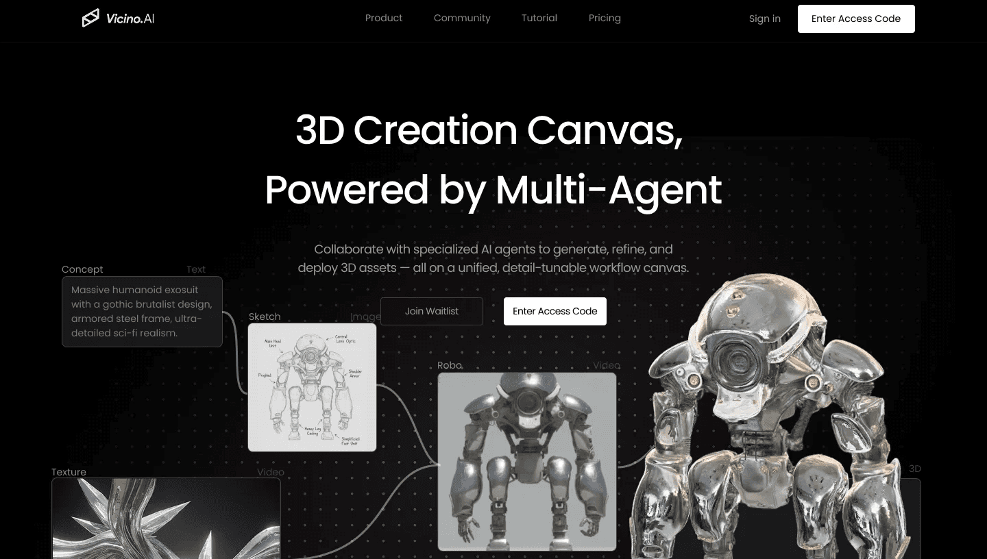 Vicino AI is a node-based creative platform that enables multi-modal generation, including 3D, image, and video.